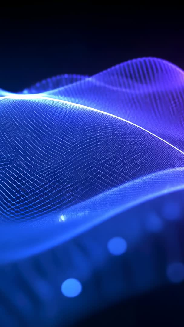 AI Generated Image. Vertical looping 3D wireframe grid featuring neon blue and purple gradient, glowing nodes, and soft bokeh highlights. Serving as background for vertical social video, Instagram Reels, TikTok clips, app intros, product demos, livestream backdrops. Supporting text overlays, logos, lower thirds, and title sequences while keeping motion subtle for legibility. Offering seamless loop for continuous playback and easy integration into timelines. Conveying futuristic, ethereal mood suitable for technology, music, science, and creative branding. Being compatible with desktop and mobile resolutions; recommending 1080x1920 or higher for full quality. Allowing speed and color adjustments for custom branding and visual alignment. Ideal for presentations, UI prototypes, event visuals, music visualizers, advertising, broadcast, and NFT galleries.