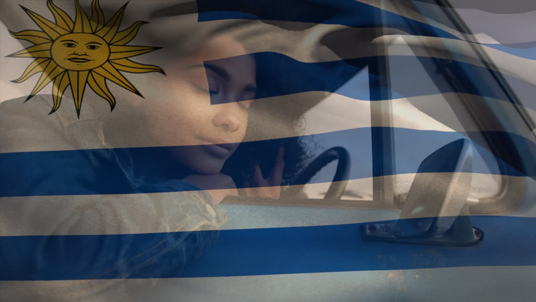 Depicts symbolic association between travel and national identity, ideal for use in tourism ads, campaigns promoting diversity, patriotic travel inspiration, or cultural blogs about exploring Uruguay.