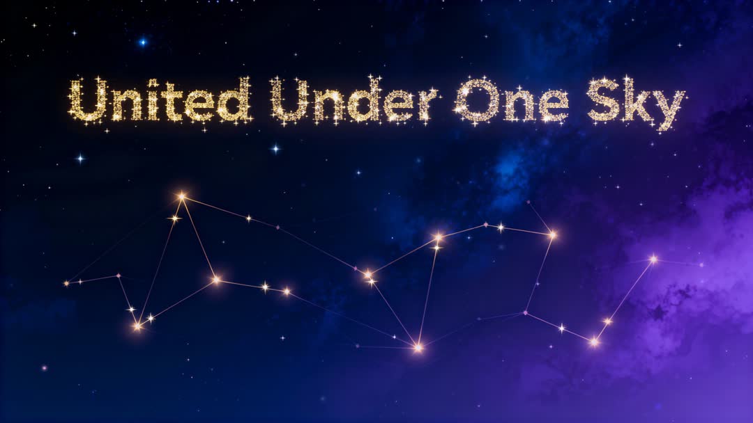 - United Under One Sky | Animated Gold Title with Twinkling Constellations over Nebula