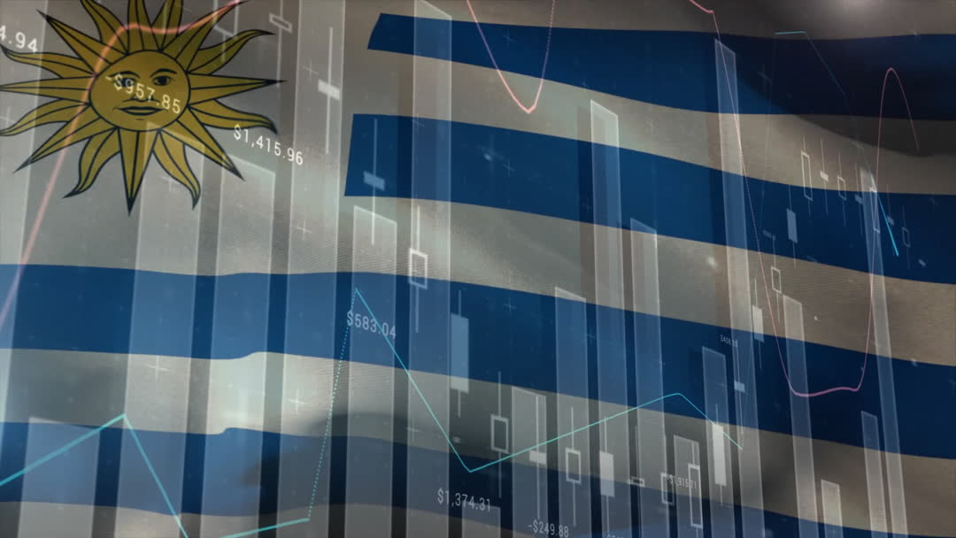 Uruguay Flag Overlay with Financial Data Visualization Video
