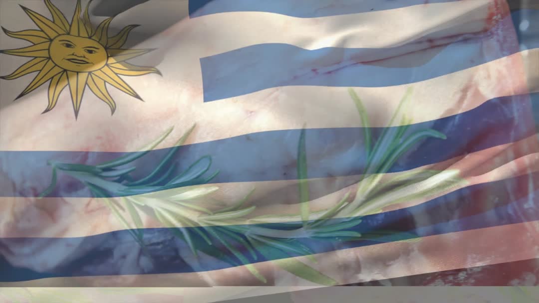 - Uruguayan Culinary Pride: Flag Rippling Over Fresh Meat with Rosemary