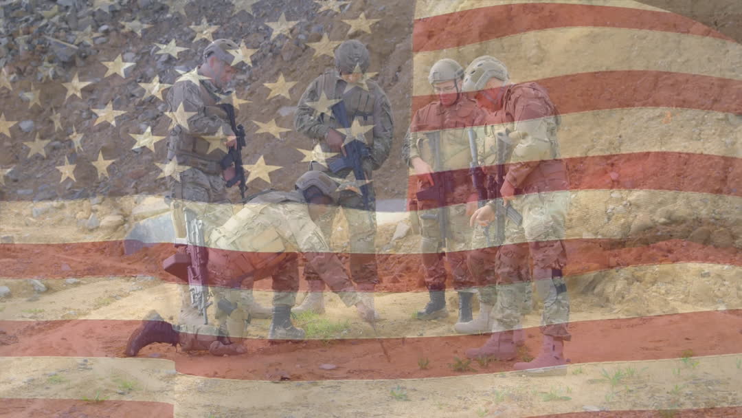 US Soldiers Overlaid with American Flag in Training Exercise Video
