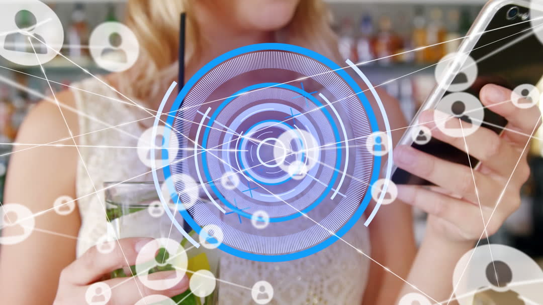 Using Smartphone with Digital Network Overlay in Social Connection Concept Video