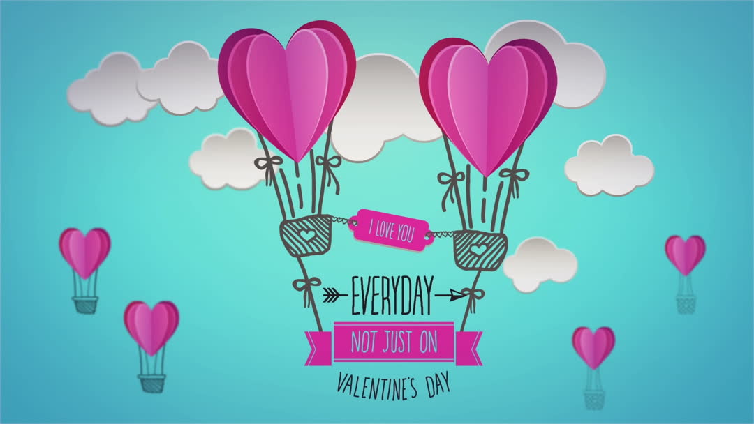 Valentine's Day Heart Balloon Animation with Romantic Message Video