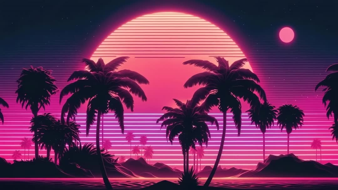<a target="_blank" href=https://pikwizard.com/video/vaporwave-neon-sunset-with-palm-tree-silhouettes/5696316cde2e7b20a99e6a94f057941f/>PikWizard</a>