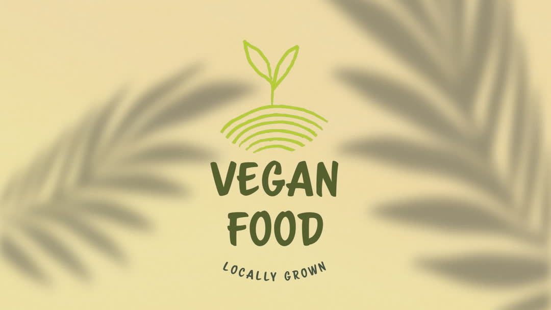 Vegan Food Logo with Leaf Shadows on Yellow Background Video