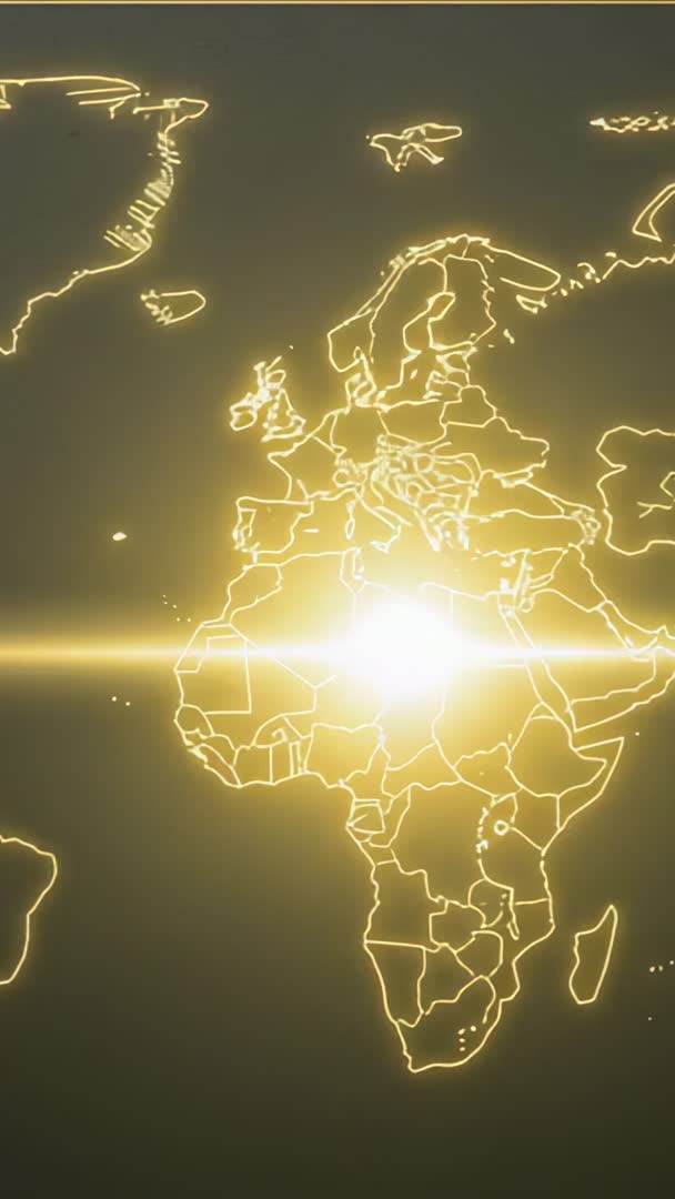 AI Generated Image. Vertical video showing 3D globe outline of Europe and Africa lighting up with intense golden lens flare and radiant center. Animation featuring neon gold lines tracing country borders, subtle rotation, and cinematic light burst revealing continental shapes. Ideal for tech presentations, corporate intros, cybersecurity campaigns, financial services visuals, news opener sequences, and social media vertical ads targeting mobile audiences. Usage suggestions: use as background for title overlays, lower thirds, app launch sequences, explainer videos, trade show visuals, and website hero banners adapted for mobile. Editing notes: loopable segment available for seamless playback, color grade to warm gold tones for cohesive branding, add ambient electronic soundtrack and punchy bass hit at flare moment for maximum impact. File format details: vertical 9:16 aspect ratio, high resolution render compatible with motion graphics workflows and common video editors.