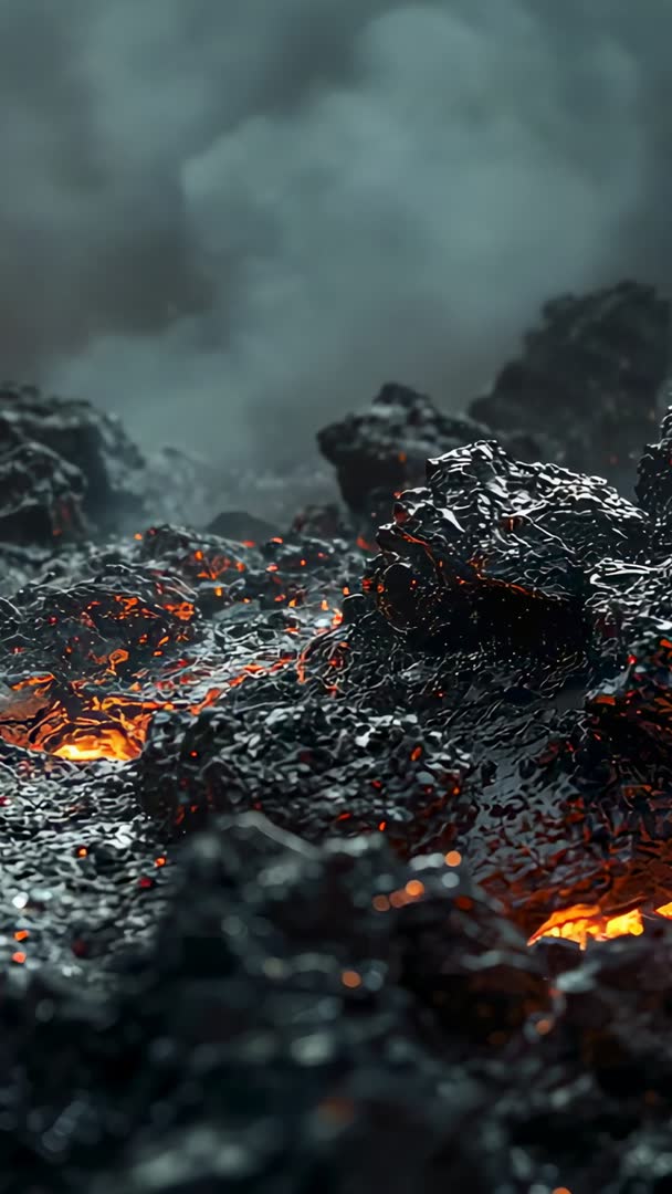 - Vertical 4K clip capturing bubbling lava field with steaming fissures and glowing embers