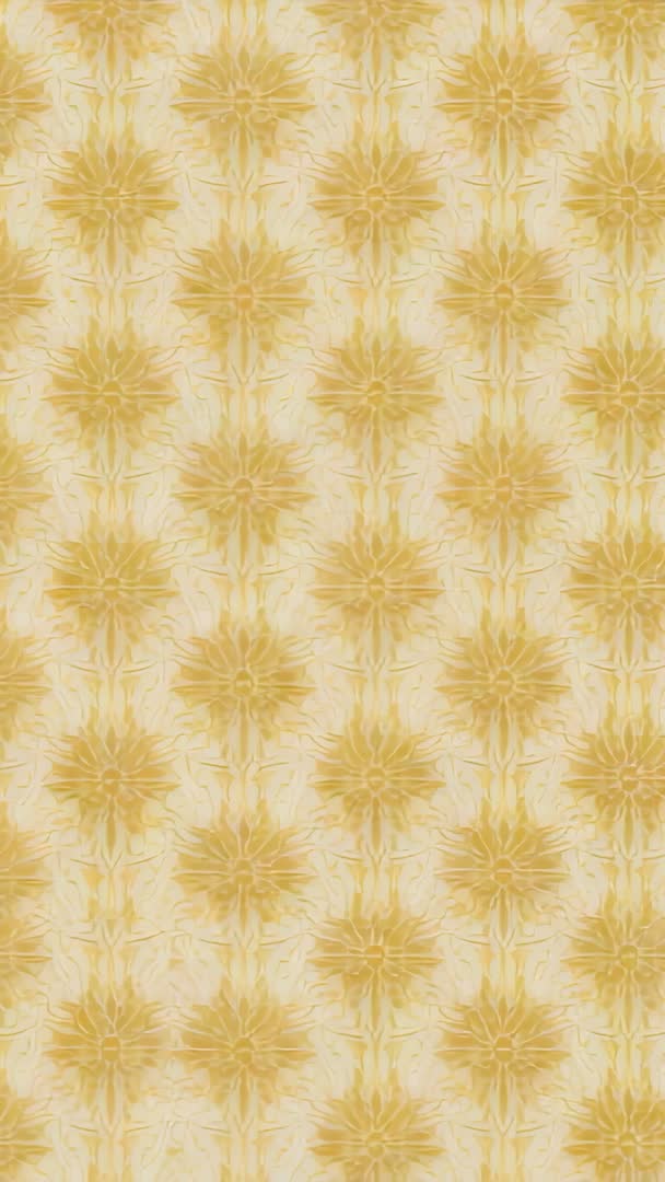 AI Generated Video. Capturing vertical 5-second clip of gold rosette motifs repeating across beige wallpaper with soft camera motion. Featuring symmetrical seamless pattern and warm yellow-gold palette evoking elegant vintage luxury. Suiting use for Instagram Reels, TikTok backgrounds, mobile wallpapers, website hero loops and digital product mockups. Serving as loopable texture for motion graphics, title overlays, packaging previews, textile and upholstery concepts, and interior design presentations. Recommending gentle slow zoom or parallax edit to add depth, subtle color grading to enhance gold highlights, and overlaying minimal typography or logo within negative spaces.