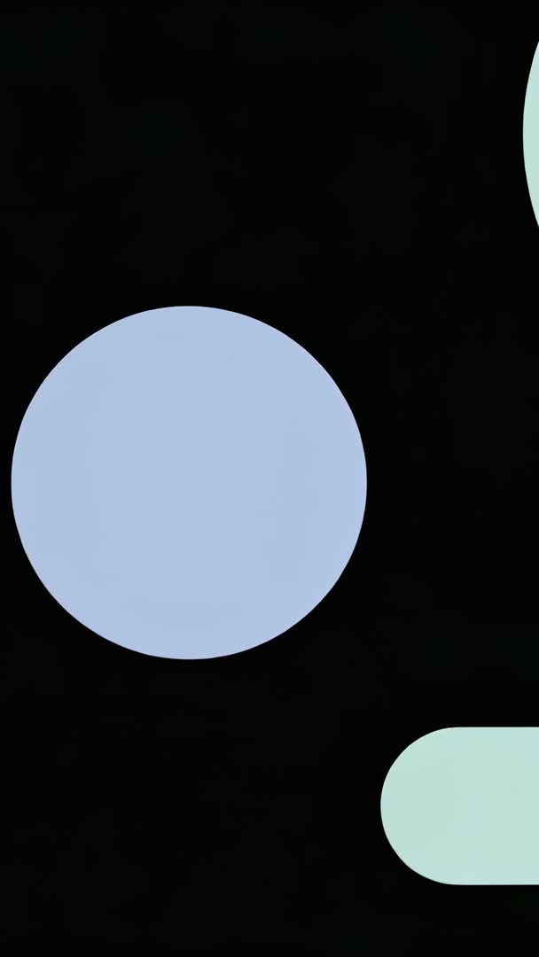 - Vertical abstract animation: mint-green shape morphing into oval overlapping blue circle