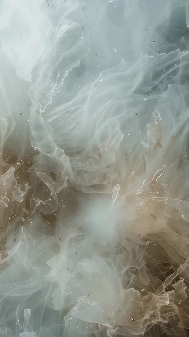 AI Generated Image. Showing milky white core releasing plumes that are fanning and mixing with brown fluid, creating translucent ribbons, filaments, and marble-like textures. Capturing slow-motion diffusion and delicate suspension ideal for abstract art, motion graphics, website hero sections, film titles, and editorial backgrounds. Providing high-contrast soft gradients and organic motion useful for product ads, fashion campaigns, music visuals, spa and wellness branding, and scientific presentations. Allowing easy color grading and overlay blending for mood-setting transitions, promotional reels, and social media vertical formats. Including subtle dark specks and microbubbles for added texture and realism.