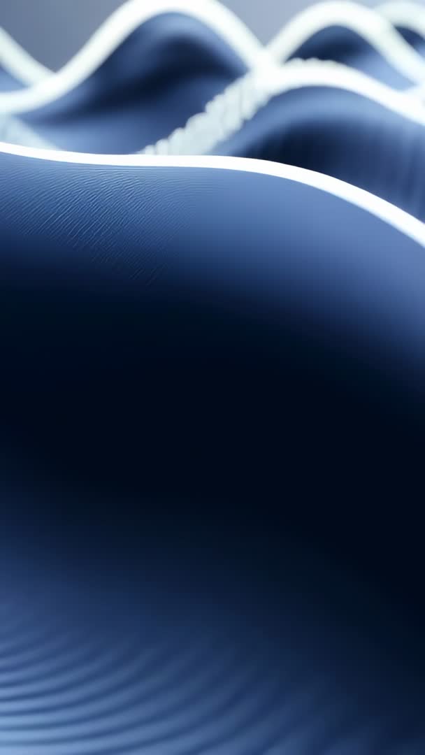 AI Generated Image. Vertical abstract video showing undulating rods forming smooth wave motion with glowing crests and textured blue surfaces. Close-up perspective emphasizing depth, ripple patterns, and soft studio lighting for cinematic feel. Futuristic, minimal aesthetic creating calm yet dynamic atmosphere. Loop-friendly composition supporting seamless playback. Working well as background for tech product promo, app intro, website hero banner, or mobile story. Suited for social media vertical reels and stories, broadcast motion background, VJ loops, presentation title sequences, and digital signage. Useful for concept visuals in technology, design, science, and relaxation or meditation content.