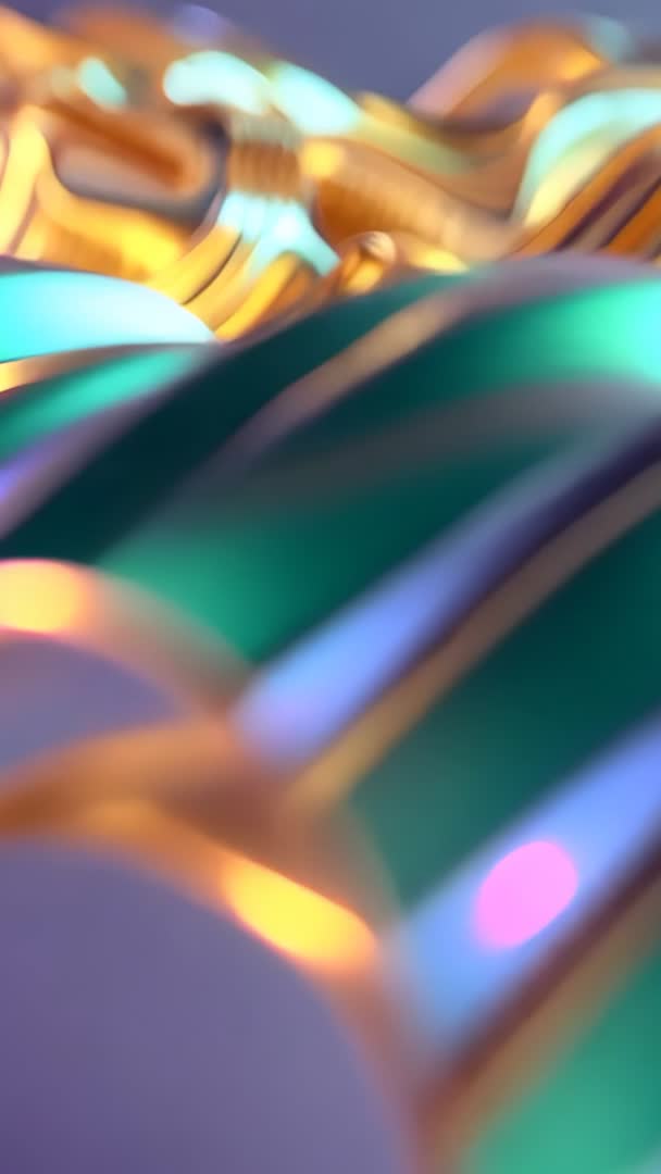 AI Generated Image. Featuring close-up vertical clip of flowing gold ribbons and teal waves moving across shallow depth of field. Highlighting reflective metal edges, soft bokeh highlights, and smooth undulating motion for fluid futuristic look. Combining warm gold tones with cool teal and violet accents to create dynamic color contrast and iridescent shimmer. Working well as loopable background for mobile apps, social vertical ads, tech promos, luxury brand intros, music visualizers, and event projections. Supplying cinematic texture for motion design, title screens, transitions, and concept presentations. Delivering slow-motion friendly material and seamless looping for editing in Premiere, After Effects, or any NLE.