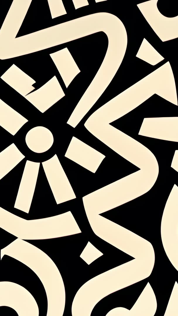 AI Generated Image. Showing sliding cream squiggles and circular motifs drifting across black canvas with soft ghosting trails. Featuring high contrast minimal palette and bold geometric forms delivering striking visual impact. Looping in 9:16 vertical format, tailored for social media stories, TikTok clips, mobile wallpaper, and vertical ads. Serving as background for title screens, product showcases, music visualizers, and brand intros. Allowing easy customization through color swaps, speed ramping, overlay text, and logo reveals for promotional campaigns. Fitting editorial layouts, textile prints, packaging mockups, and projection mapping when scaled.