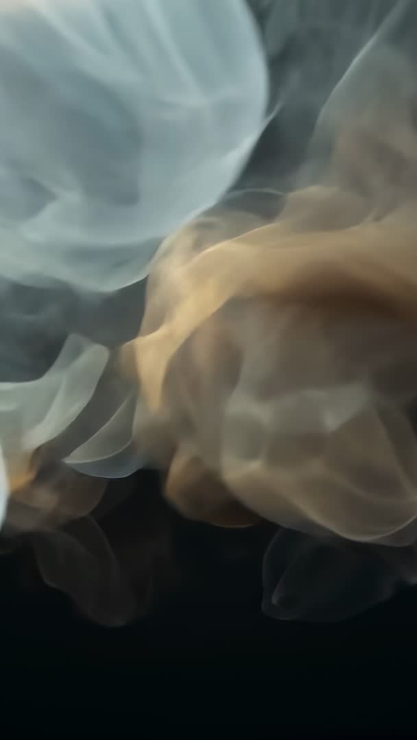 - Vertical abstract smoke video forming amber and blue ribbons drifting over black backdrop
