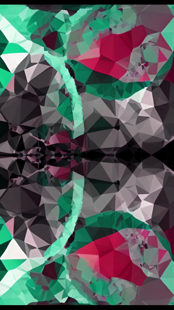 Vertical abstract tessellated symmetry with triangular facets in teal and magenta Video