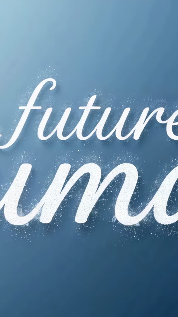 AI Generated Image. Vertical 9:16 motion clip revealing script word 'future' on soft blue gradient while sparkling particles and powder dust are settling along letter edges and producing subtle glow. Flowing handwritten script is forming at frame start with particle bursts and gentle dissipating trails, creating cinematic title reveal with ample negative space for overlay elements. Suitable for social media intros, Instagram Story and TikTok openers, mobile app promos, website hero sections, corporate presentation openers, event trailers and product launch teasers. Delivery ideas: export as MP4 H.264 or ProRes, provide loopable 8-15 second version, include alpha or masked version for easy text replacement and logo reveal. Creative directions: swap color palette to brand tones, extend settle time with slow motion for dramatic effect, add ambient chimes and light whoosh sound design for emphasis. Usage tips: pair with concise tagline or call to action, position logo in lower third, use as countdown or new year campaign opener, or repurpose reversed animation for graceful outro.