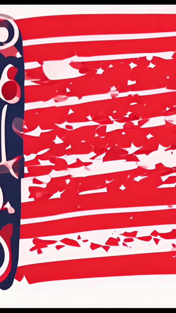 AI Generated Image. Vertical video showing canvas opening, revealing navy panel at left while red stripes sweep down, shedding fragments into confetti-like particles. Motion using bold red, deep navy, crisp white for vibrant modern look. Composition focusing on geometric forms, minimal lines, dynamic particle movement, clean negative space. Loopable animation targeting vertical formats such as social media stories, reels, mobile ads, app intros. Suggestions for use: placing logo on navy panel for reveal, adding headline text over white stripe area, adjusting colors to match brand palette, extending particle density for longer transitions. Delivery suggestions: looped MP4 or MOV, 30/60fps, optional alpha channel for overlays.