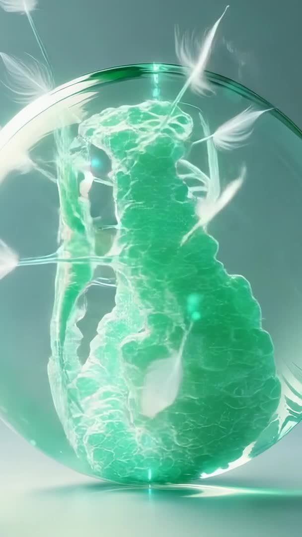 AI Generated Image. Showing vertical cinematic clip of glass orb revealing morphing green neural net with delicate feathers drifting inside translucent sphere. Combining biomorphic texture, soft studio lighting, and luminous green tones for futuristic, clinical, and artistic narratives. Suitable for technology presentations, biotech promos, scientific explainers, app intros, and social media vertical ads. Providing loop-friendly footage for background motion, title cards, and lower thirds while remaining color-gradeable for brand matching. Pairing well with ambient electronic soundtrack and slow-motion transitions to evoke innovation, neural interfaces, synthetic biology, and data visualization storytelling.