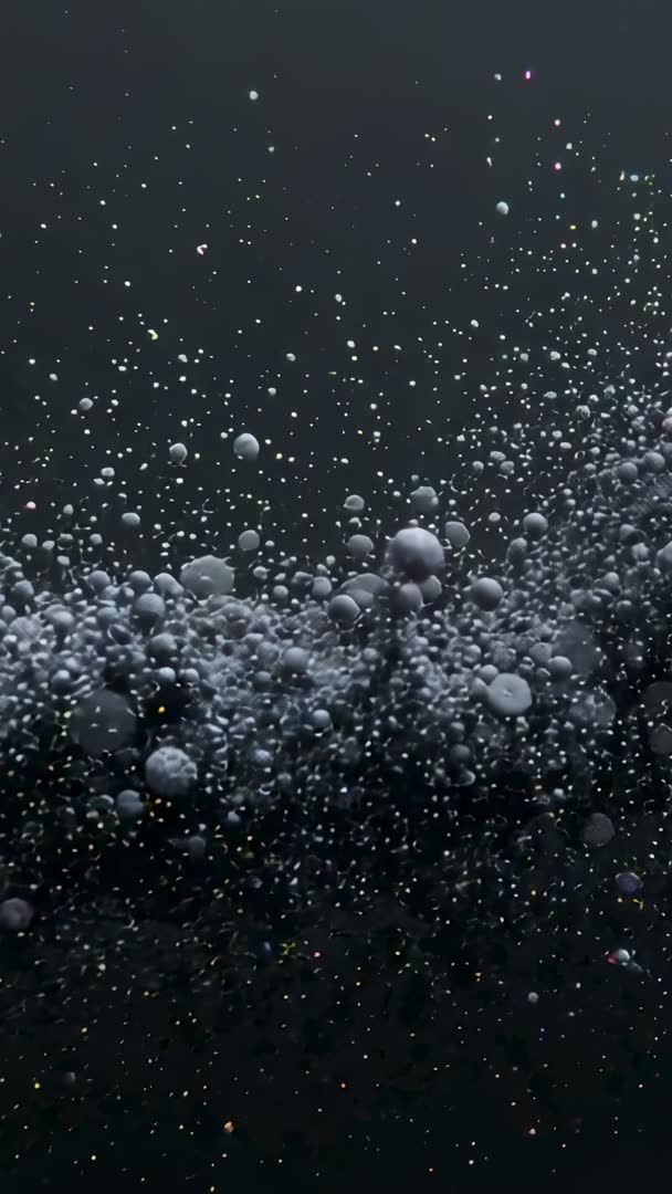 AI Generated Image. Showing rising spherical cloud spreading through dark tank while frames advancing to reveal dense field of floating particles. Creating strong depth and contrast with clusters of varying sizes, soft highlights, and tiny color flecks for subtle color variation. Working as vertical loop ideal for social media reels, music visuals, motion graphics backgrounds, technology presentations, scientific illustrations, and product commercials. Providing seamless loop option, slow-motion feel, and wide tonal range for color grading and compositing. Pairing well with ambient electronic soundtracks, abstract title sequences, or brand campaigns focused on innovation and mystery. Delivering clean matte area along edges for overlay and text insertion, plus easy masking for VFX and motion design projects.