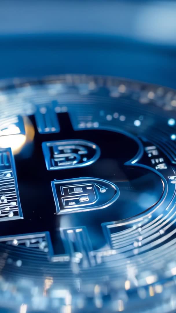 AI Generated Video. Starting camera panning over metallic Bitcoin emblem, revealing intricate circuitry and glowing blue highlights. Showcasing digital currency concept, blockchain innovation, fintech aesthetics, and secure transaction symbolism. Serving ideal for cryptocurrency explainer videos, financial presentations, app intros, landing pages, social media shorts, news packages, and marketing campaigns. Pairing with electronic soundtrack and animated data overlays to emphasize network flow and decentralized architecture. Cropping for vertical ads, stories, reels, and mobile-first content. Color grading supporting cool blue palette to communicate trust and modernity. Licensing fitting for editorial market coverage, corporate promos, educational content about blockchain fundamentals, and product launches.