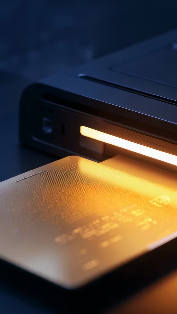 AI Generated Video. Showing close-up vertical footage of scanner head moving across PCB while warm LED strip illuminating printed traces and textured solder mask. Highlighting detail of circuit pattern, copper pads, vias and surface finish for inspection and documentation. Working well for electronics manufacturing presentations, AOI process demonstrations, product teardown reels, technical training, hardware security visuals, website hero banners and vertical social ads. Allowing easy color grading for moody industrial look or clean lab aesthetic. Including space for overlay text and motion graphics along top area.