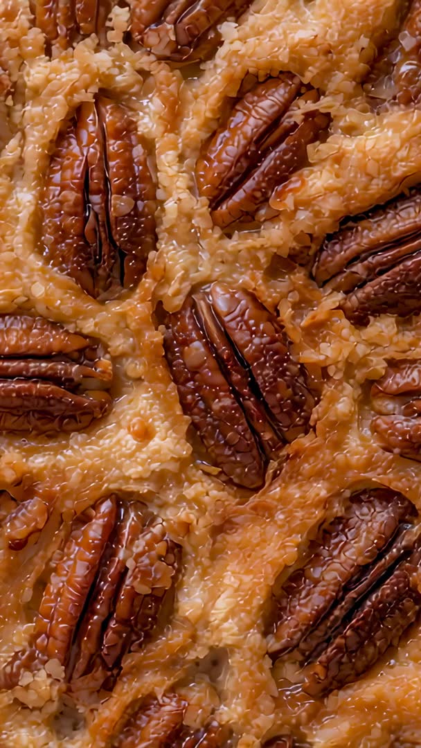 AI Generated Image. Vertical video showing slow camera shift across pecan halves nestled in syrupy pastry, highlighting glossy caramel sheen and crunchy nut texture. Closeup framing emphasizing pecan grooves, syrup bubbles, and buttery crust edges. Suiting food blog hero clips, recipe reels, social media ads, bakery product promos, Thanksgiving and holiday dessert content. Working well as loopable background for recipe steps, title card, product carousel, or packing into vertical ad spots. Pairing with warm color grade and soft studio lighting to enhance caramel tones. Adding ambient piano or ASMR-style crunch to boost sensory appeal. Suggesting overlaying ingredient text, recipe steps, or logo animation for branded content.