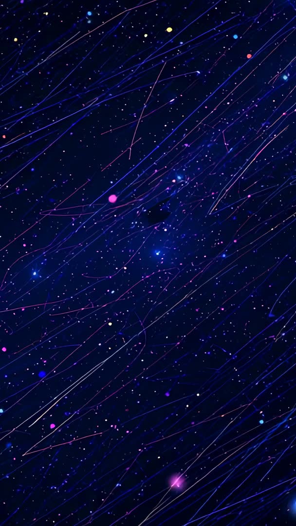 AI Generated Image. Showing vertical cosmic field with neon diagonal streaks passing multicolored stars and floating dust. Featuring deep blue and purple hues, glowing particles, and occasional bright flares for high visual impact. Creating immersive motion ideal for sci-fi and futuristic projects, digital backgrounds, and music visualizers. Optimizing for vertical video formats such as Instagram Reels, TikTok, Snapchat, and mobile wallpapers. Working well as loopable background for app intros, title sequences, live VJ sets, conference openers, and promotional ads. Offering high-contrast neon accents for layering with typography, logos, or product shots. Pairing with slow zoom, parallax, or subtle color grading to enhance depth and mood. Suggesting use for social media campaigns, mobile-first advertising, streaming visuals, and ambient screensavers.