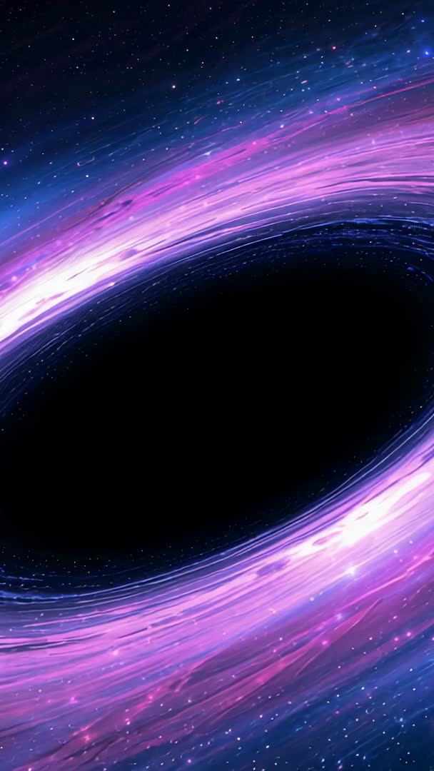 - Vertical cosmic vortex animation rotating neon pink accretion ring around black hole void