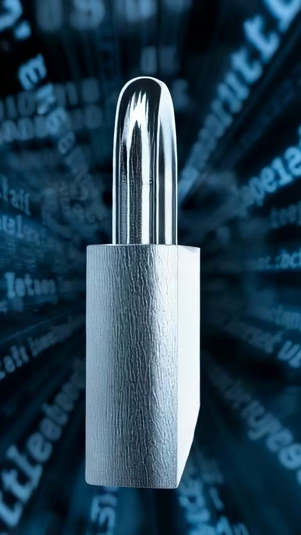 AI Generated Video. Vertical loop clip showing metallic padlock rotating against streaking digital code, evoking cybersecurity, encryption, and data protection. Cool blue palette and reflective chrome surfaces creating futuristic, high-tech mood. Vertical 9:16 composition and seamless loopable motion making clip ready for social platforms and mobile-first projects. Ideal for website hero backgrounds, video intros, explainer animations, product demos, corporate cybersecurity presentations, IT service promos, and social media ads. Use by overlaying headline text, adding logo, integrating animated transitions, or looping for ambient background. Color grading and speed adjustments recommended to match brand tone. Suitable for cyber insurance, data center, online privacy, firewall, encryption, secure login, and network monitoring creative.
