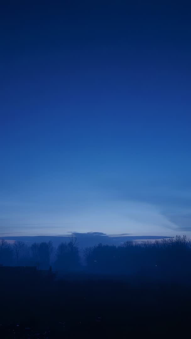 AI Generated Video. Capturing predawn light slowly rising over misty meadow, creating deep blue gradient sky and dark tree silhouettes. Ideal for vertical video backgrounds, mobile wallpapers, social media stories, intros, ambient scenes in documentary or atmospheric commercial projects. Use for promoting wellness, meditation, early morning routines, weather forecasts, nature conservation campaigns, or travel content featuring quiet rural landscapes. Working well with minimalist text overlays, logo reveals, slow fade transitions, or parallax title animations. Offering generous negative space at top for vertical titling and call-to-action placement. Suitable for 9:16 vertical aspect, low light mood, and subtle fog layers enhancing depth and cinematic feel. Color scheme dominated by cool blues and soft grays, supporting moody or calming brand narratives.