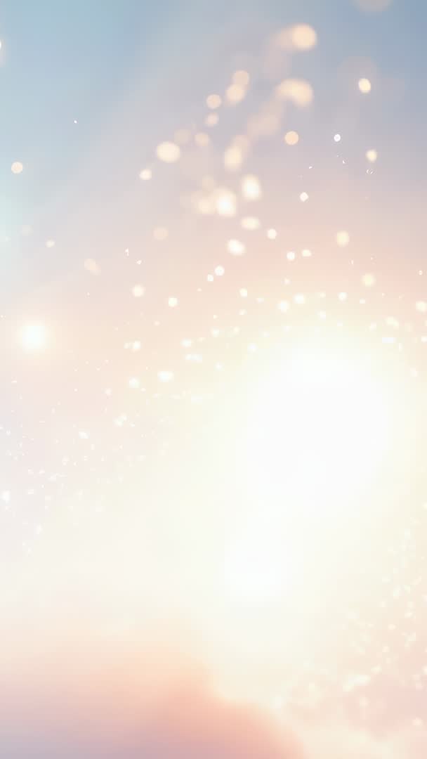 AI Generated Image. Offering vertical cinematic loopable footage featuring golden bokeh orbs pulsing and gently dispersing across pastel sunrise sky. Delivering soft luminous atmosphere with warm sun flare, delicate sparkles and ethereal, dreamy tones. Suiting use for meditation app backgrounds, social media stories and reels, smartphone wallpapers, cinematic title cards, wedding openers, event projection, product promo overlays, mood-setting slideshows and web hero banners. Providing seamless loop option for ambient installations and VJ performances; allowing color grading to match brand palette; pairing with slow ambient music for calming, inspirational scenes.