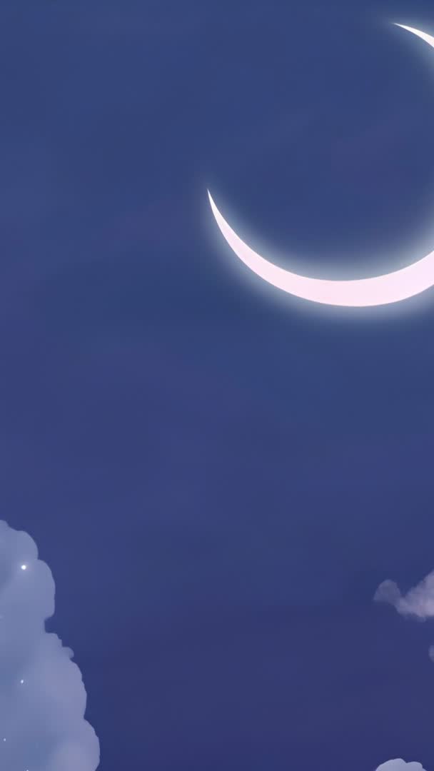- Vertical Dreamy Night Sky with Glowing Crescent Moon and Drifting Lavender Clouds