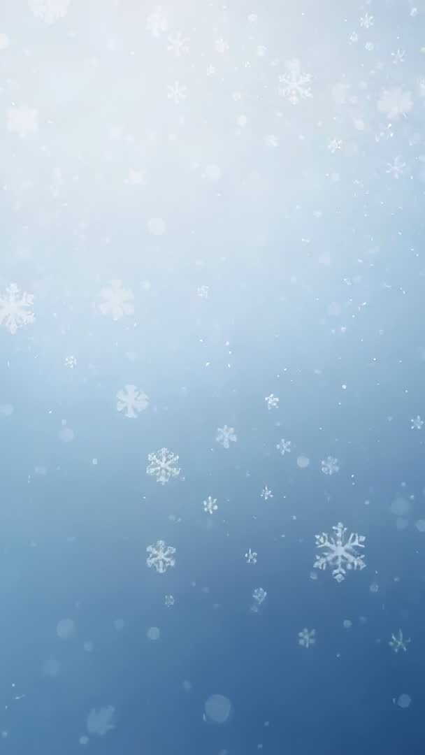 AI Generated Video. Vertical 9:16 video showing falling snowflakes and soft bokeh drifting across soft blue gradient. Foreground snowflakes detailed while background blurred, creating depth and gentle motion. Loopable clip suiting winter intros, holiday social media stories, vertical ads, mobile wallpapers, seasonal overlays, app backgrounds. Serving Christmas promotions, cold weather product ads, calming meditation visuals, event invitations, digital signage. Customization options including adjusting speed, changing color tint, overlaying text or logo, adding warming filter for evening mood. Clip working as subtle backdrop for title cards, lower thirds, product reveals, website hero sections.