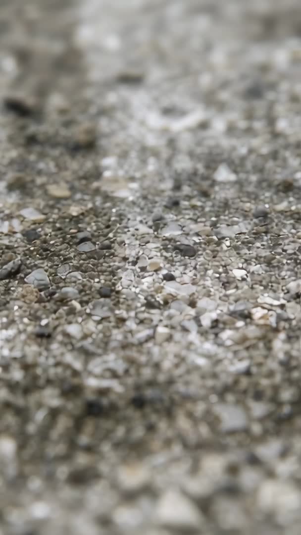 AI Generated Video. Camera shifting focus across shell fragments and coarse sand on shoreline, revealing glinting texture and subtle color variation. Portrait footage featuring shallow depth of field, macro detail and soft bokeh, creating calm minimalist aesthetic. Ideal for background loops, social media vertical reels, mobile wallpapers, website hero sections, nature documentaries, coastal conservation stories and environmental education. Useful as texture overlay for design projects, product packaging mockups, meditation apps, travel promos and editorial layouts.