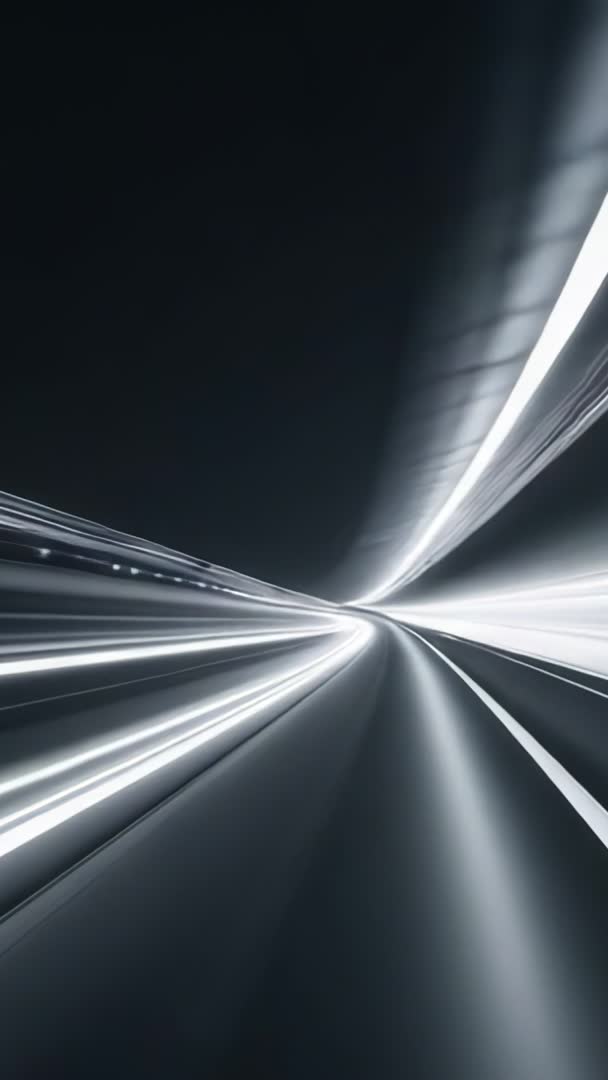 AI Generated Image. Camera racing through dark curved tunnel lined with luminous lane markings and neon streaks, creating dynamic motion blur and intense sense of speed. High-contrast monochrome palette with cool neon highlights delivering modern tech mood and cinematic depth. Suiting vertical platforms including Instagram Reels, TikTok, Snapchat stories and mobile ads, providing immersive motion for short-form content and promos. Working well as loopable background for title sequences, app demos, keynote intros, web banners and product hero clips. Leaving negative space in upper left for copy and logo overlays and allowing color grading to match brand palette. Ideal for commercial advertising, technology campaigns, music visuals and futuristic storytelling.