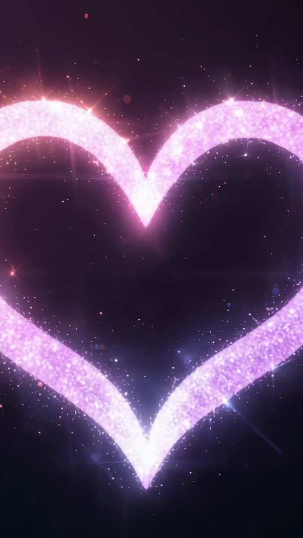 AI Generated Video. Animated vertical loop showing glittering pink heart pulsing over dark starfield with drifting spark particles and soft lens flares. Centered heart outline leaving generous negative space inside and above for text overlay or logo placement. High-contrast neon glow and gentle bokeh making ideal backdrop for romantic reels, Valentine promotions, wedding intros, beauty product ads, and dating app branding. Looping motion offering seamless transition between cuts, easy integration into social stories, mobile ads, and motion graphics templates. Color grading suggestions: boost magentas and highlights for stronger sparkle, lower background exposure for deeper cosmic feel.