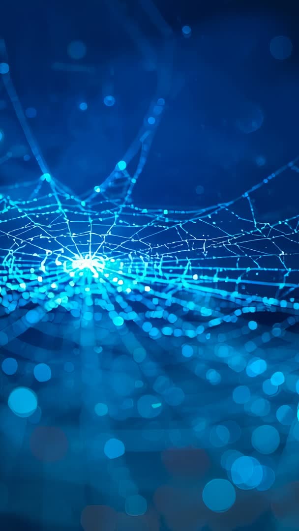 AI Generated Image. Vertical video showing glowing blue network grid with central node and drifting bokeh orbs, creating futuristic digital atmosphere. Visual suggesting connectivity, data flow, and complex network topology for tech storytelling. Ideal for app intros, website hero sections, product demos, corporate presentations, social media ads, and event openers. Motion graphics designers using as loopable background, editors applying as transition layer, and educators using as illustration for networking or cybersecurity concepts. Color grading, speed ramping, and overlaying text allowing quick customization for branding. Vertical format optimizing for mobile-first campaigns and portrait social video.