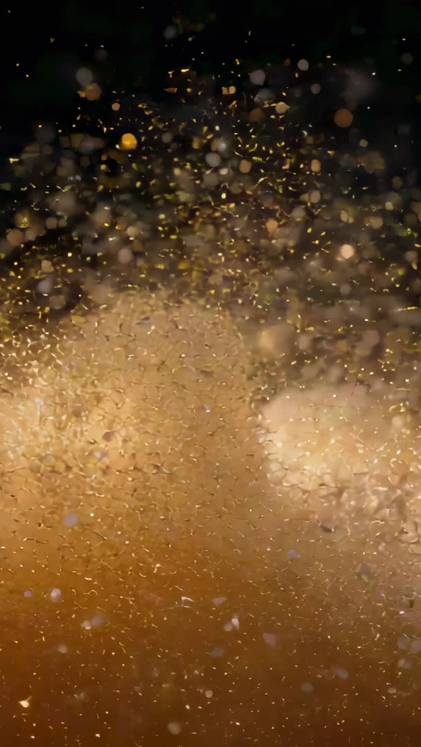 Vertical gold dust explosion scattering with cinematic bokeh and shimmering particles Video