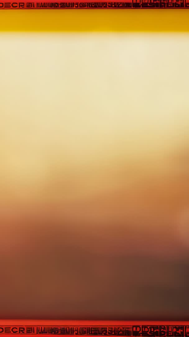 AI Generated Image. Vertical video showing gradient shifting from warm cream to deep amber, accented by thin red overlay bars and retro film-edge markings at top and bottom. Presenting minimal, abstract motion suited for looping as ambient background. Serving mobile app splash screens, social media stories, vertical ads, music visualizers, title slates, product showcase overlays. Allowing easy customization by adding brand logo, headline text, lower-third graphics, or applying color grading to match brand palette. Recommending 9:16 export for social platforms, adding subtle parallax or slow zoom for dynamic interest, and placing key text within central safe area to avoid overlap with film-edge markings. Compatible with editorial projects, motion design templates, digital signage, and promotional reels.