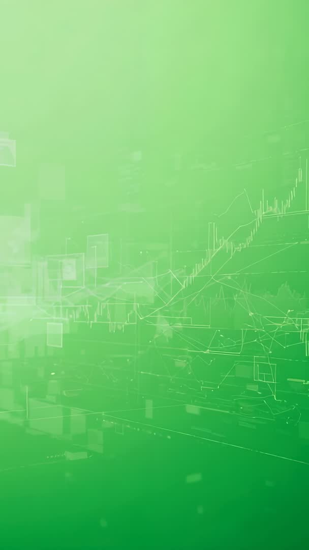 AI Generated Image. Vertical motion graphic presenting rising financial line chart over smooth green gradient, featuring floating rectangular data panels, candlestick markers, gridlines and interconnected data nodes. Suiting mobile vertical format, fitting story ads, social media reels, app previews and financial news intros. Serving use cases including conveying market growth, illustrating investment performance, supporting fintech demos and enhancing dashboard UI presentations. Allowing space for overlay text, logo placement and voiceover, enabling quick adaptation for marketing, educational and corporate video content.
