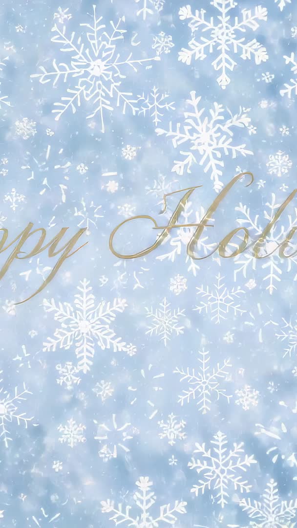 AI Generated Image. Vertical holiday clip showing sliding gold calligraphy across soft blue canvas with falling white snowflakes and subtle bokeh. Gentle motion creating loop-friendly mobile-first playback, providing elegant backdrop for seasonal messaging or product promotion. Ideal uses include Instagram Story, TikTok post, mobile ad, digital greeting card, email banner, in-store digital signage, event invitation reel. File allowing overlay of custom logo or text, timing syncing with music or voiceover, cropping for various vertical aspect ratios, and color adjustment for brand matching.