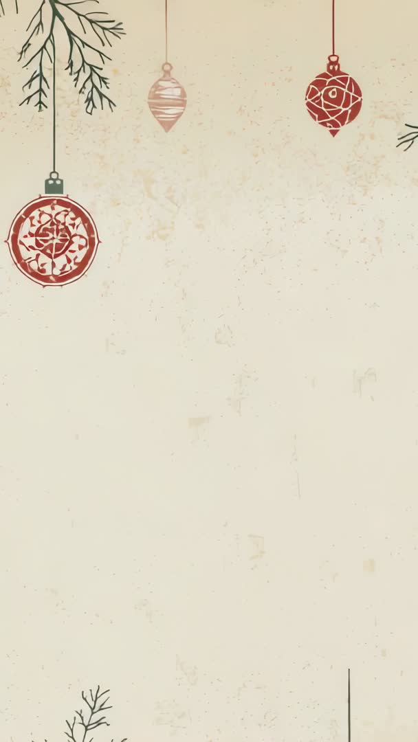 AI Generated Image. Vertical looping video showing pine twigs swaying over parchment background with three hanging Christmas baubles. Muted color palette and subtle paper grain creating vintage, rustic holiday mood. Generous blank parchment area providing copy space for text, logo, animated titles, or countdown overlays. Suited for holiday greetings, social media stories, vertical ads, seasonal invitations, e-card intros, and email headers. Looping motion enabling seamless background for product showcases, service promos, or event announcements. Suggested uses include adding gentle instrumental music, slow fade transitions, and simple typographic messages in warm tones. Delivery-ready vertical format optimizing mobile-first placements and story ad units.