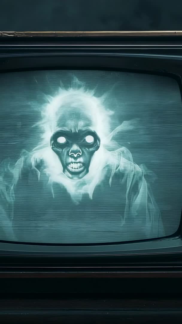 - Vertical Horror Clip: Ghostly Skull Forming on Flickering CRT TV With Retro Scanlines
