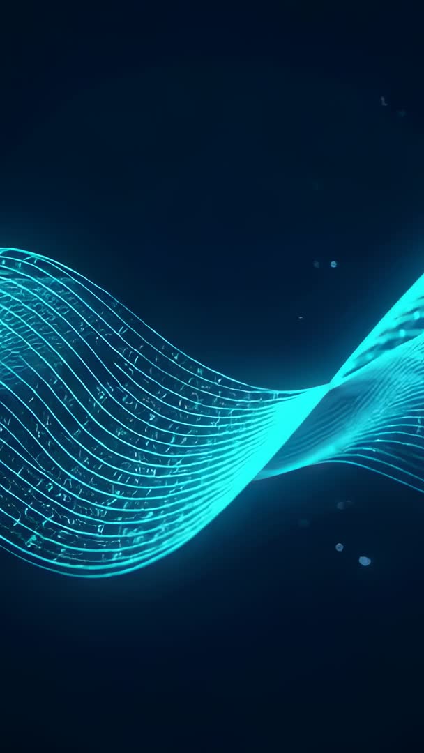 AI Generated Video. Vertical loop featuring luminous teal data wave undulating across deep blue void, glowing grid lines and floating particles conveying futuristic network flow. Designed for vertical screens, loop playing smoothly for mobile ads, app intros, social stories, and event visuals. Suitable for tech presentations, product reveal backgrounds, UI motion, electronic music visuals, broadcast lower thirds and digital signage. Creative edits suggesting overlaying bold sans serif text, adding ambient synth soundtrack, adjusting color grade to match brand palette, slowing motion for dramatic emphasis or speeding up for energetic promo. Delivering modern, sleek mood with high-tech energy, offering flexible use in marketing, UX demos, conference intros and video backgrounds.