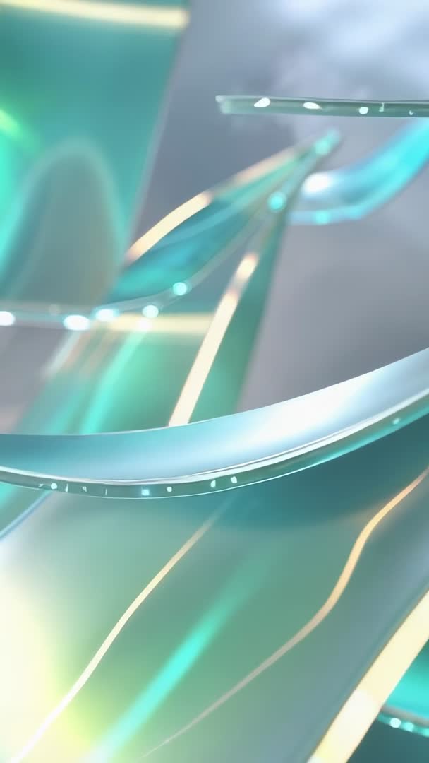 AI Generated Image. Vertical abstract motion loop showing translucent teal ribbons undulating against soft gray backdrop. Smooth metallic edges and scattered bead highlights creating futuristic, elegant atmosphere. Serving as background for tech presentations, app intros, product reveal animations, and social media vertical ads. Working well for luxury branding, wellness promotions, and digital art installations. Allowing easy overlaying of text, logos, and lower-thirds with generous negative space. Delivering loop-ready composition for seamless playback on mobile screens, vertical displays, and intro/outro sequences.