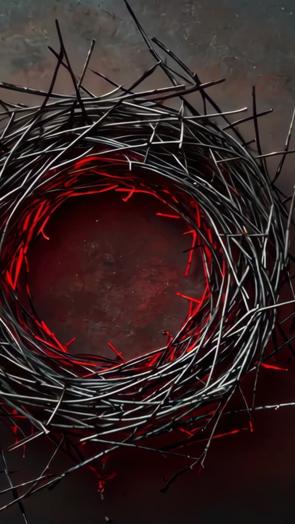 AI Generated Image. Presenting vertical loop pulsing red illumination circling metallic wreath on rust-colored metal surface. Combining high-contrast industrial textures with minimal composition and moody atmosphere. Providing versatile loop for openers, title backgrounds, music visuals, product promos, thriller or horror mood boards, social media reels, and ambient screensavers. Working well with color grading, speed ramping, and cinematic sound design; allowing text overlays and logos to sit in central void for clean branding.