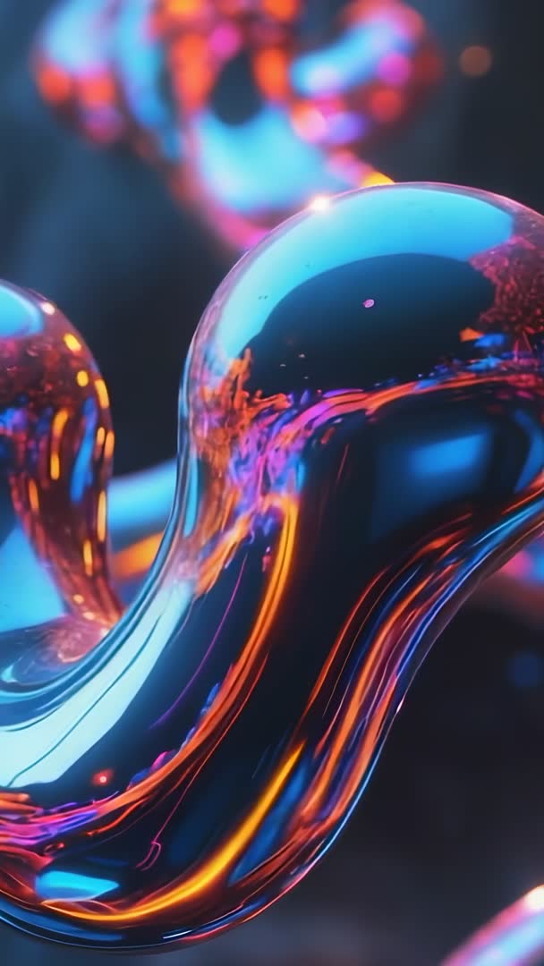 AI Generated Image. Video showing orbiting camera revealing glossy metallic liquid form with neon blue and orange reflections, strong specular highlights, and shallow depth of field. Close-up movement emphasizing flowing surface, mirror-like reflections, and vibrant color contrast for immersive visual impact. Loop-ready clip working well for vertical social ads, mobile wallpapers, music visualizers, app intros, tech product reveals, VJ loops, and brand ident sequences. Color grading suggestions: boost vibrance, preserve deep blues, enhance warm neon highlights for cinematic contrast. Delivery tips: trim loop points to 2–8 seconds for seamless playback, add ambient electronic soundtrack at 100–120 BPM for matching motion. Ideal for sci-fi, technology, creative and digital art projects seeking modern, futuristic aesthetic.