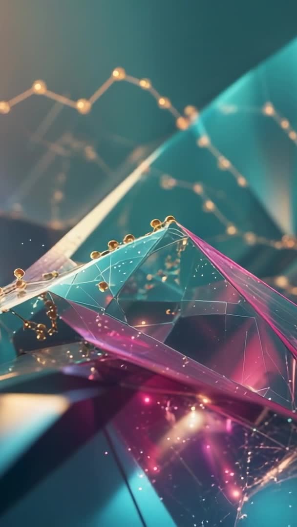 AI Generated Image. Vertical loop video showing pulsing translucent mesh, rolling gold spheres, lit network lines, and floating particles in teal and magenta palette. Depth and soft bokeh highlights creating immersive, cinematic tech ambience. Suiting mobile background, social vertical ads, tech presentation openers, event visuals, product launch promos, and screensaver loops. Looping motion graphics working well for app backgrounds, UI demos, streaming overlays, and digital signage. Allowing color grading and speed control for brand matching and mood shifts. Delivering futuristic, high-tech look for finance, AI, network, and data visualization themes.