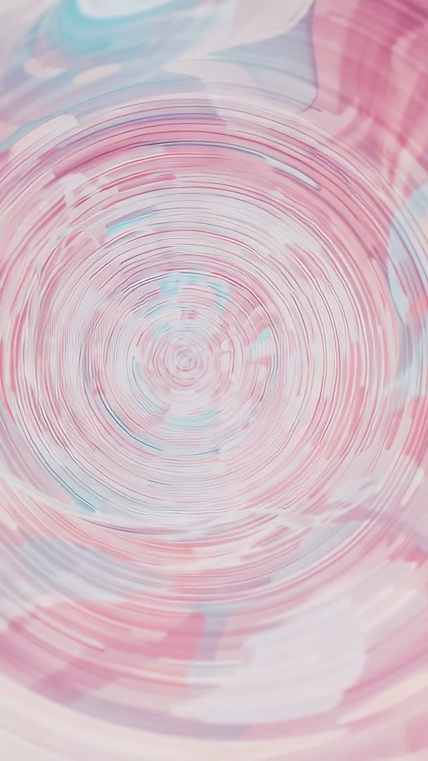 AI Generated Image. Vertical looping pastel swirl rotating around center, showing marbled concentric rings flowing in soft pink and aqua tones. Hypnotic, calming motion creating seamless loop for continuous playback. Ideal for mobile background usage, social media reels, stories, TikTok and IG content, app splash screens, meditation and relaxation apps. Useful as ambient backdrop for product showcase, fashion or beauty promotions, wellness brand campaigns, and event visuals. Easy to integrate into video edits or motion graphics projects; compatible with 9:16 vertical formats and loop-enabled timelines. Color palette supporting pastel, feminine, modern design. Consider adding subtle text overlays or logo animations for branded content, or pairing with ambient music for soothing visual experience.